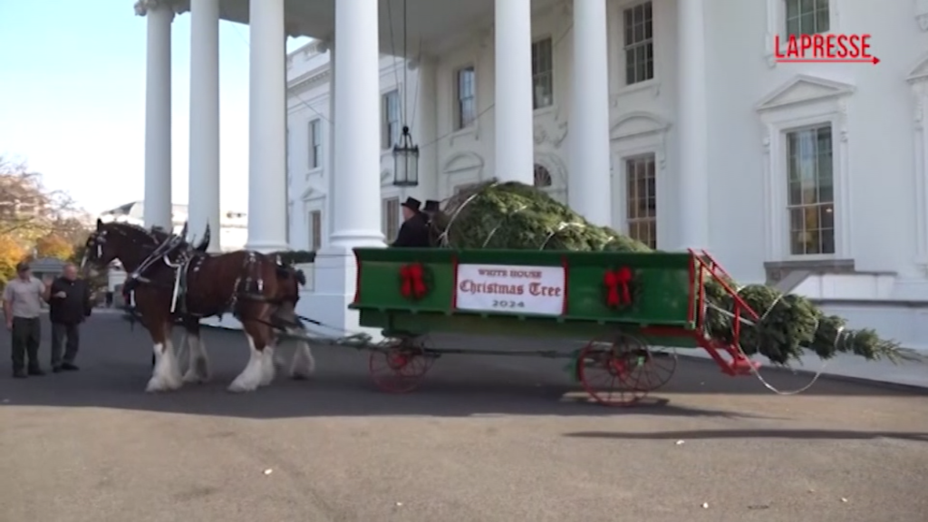 La first lady Jill Biden ha preso in consegna l’albero di Natale ufficiale della Casa Bianca, destinato a essere esposto nella Blue Room. E’ un abete che proviene da una fattoria del North Carolina, di proprietà della famiglia Cartner. L’azienda è stata devastata dall’uragano Helene a fine settembre.