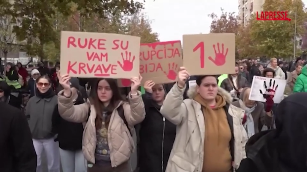 Migliaia di persone si sono unite a una marcia di protesta a Novi Sad, in Serbia, un mese dopo il crollo di una tettoia di cemento accanto alla stazione ferroviaria della città, nel quale 15 persone hanno perso la vita. I manifestanti reggevano un enorme striscione con l’impronta di una mano rossa, un messaggio per le autorità che hanno le mani sporche di sangue. I partecipanti hanno poi lasciato lo stesso messaggio simbolico sul marciapiede della piazza principale di Novi Sad. Dal crollo del tetto, si sono tenute quasi quotidianamente proteste di piazza e blocchi, con i dimostranti che chiedono spiegazioni sull’incidente, avvenuto senza apparenti ragioni e dopo che l’edificio della stazione era stato ristrutturato due volte negli ultimi anni. Molti in Serbia ritengono che la corruzione dilagante e gli accordi poco trasparenti abbiano portato a un lavoro approssimativo durante la ricostruzione e al crollo del tetto. La marcia di domenica a Novi Sad si è svolta in silenzio e in modo pacifico, a differenza di alcuni blocchi del traffico delle scorse settimane, quando i sostenitori filogovernativi hanno cercato di interrompere i raduni e si sono scontrati con i manifestanti.