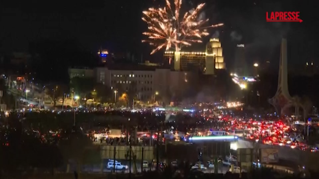 Fuochi d’artificio a Damasco mentre migliaia di siriani si sono radunati nella piazza principale della città per le prime preghiere musulmane del venerdì da quando è stato rovesciato il governo dell’ex presidente Bashar Assad. Un importante momento simbolico per il drammatico cambio di potere del Paese. I fuochi d’artificio hanno illuminato il cielo su piazza Umayyad mentre i festeggiamenti sono continuati fino a notte fonda. I ribelli stanno ora lavorando per stabilire la sicurezza e avviare una transizione politica dopo aver preso la capitale.