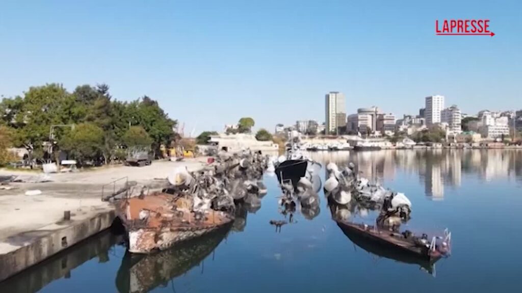 Nel porto siriano di Latakia, in Siria, i resti di 15 navi della marina militare distrutte dopo gli attacchi aerei israeliani. Gli aerei hanno colpito quelli che secondo Israele erano sistemi di difesa aerea siriani, campi d’aviazione militari, depositi di missili e di armi nelle città di Damasco, Homs, Tartus, Latakia e Palmira. Ayman Ali, un ingegnere del porto, ha raccontato di essere tornato al lavoro due giorni dopo gli attacchi aerei e di aver scoperto che la barca usata dai funzionari del porto era stata colpita. Le riprese dei droni mostrano che diverse navi militari e civili sono state distrutte mentre attraccavano al porto.