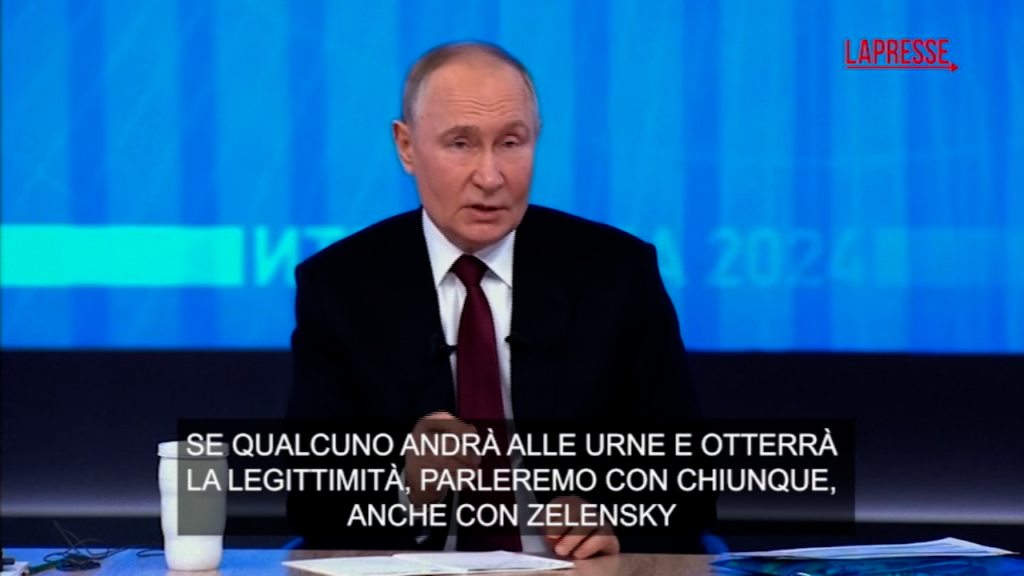 La Russia negozierà con Volodymyr Zelensky se si presenterà alle elezioni e otterrà la legittimità. Lo ha dichiarato il presidente russo Vladimir Putin nella conferenza stampa di fine anno, a Mosca. “Noi possiamo firmare accordi solo con chi è legittimo, e solo la Rada (il parlamento ucraino, ndr) e il presidente della Rada sono legittimi”, ha affermato il leader del Cremlino.