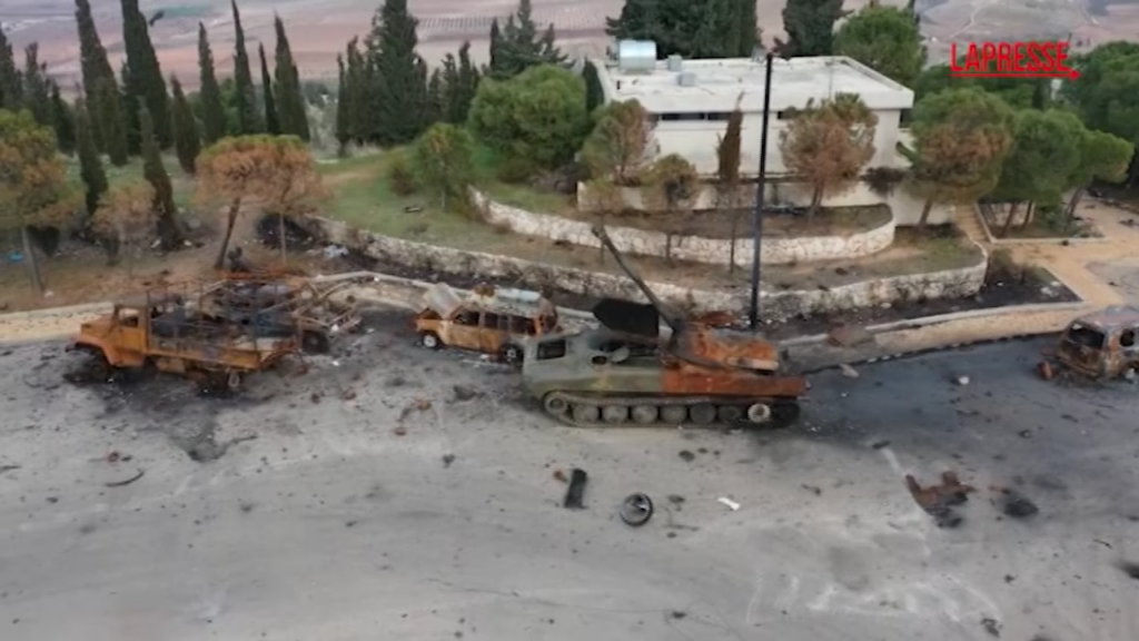 Il drone ha immortalato ciò che resta della violenta battaglia nella città di Hama, in Siria, che ha lasciato carri armati e lanciarazzi carbonizzati vicino a una moschea. Durante l’offensiva dei ribelli siriani contro le forze dell’ex presidente Bashar Assad, si sono svolti pesanti combattimenti per il controllo del sito strategico della montagna, con il tempio islamico trasformato in una caserma militare. I ribelli hanno circondato il massiccio fino alla liberazione della città di Hama. Il massiccio è servito come punto di lancio per i bombardamenti e le operazioni militari condotte dalle forze di Assad contro le aree controllate dai gruppi ribelli.