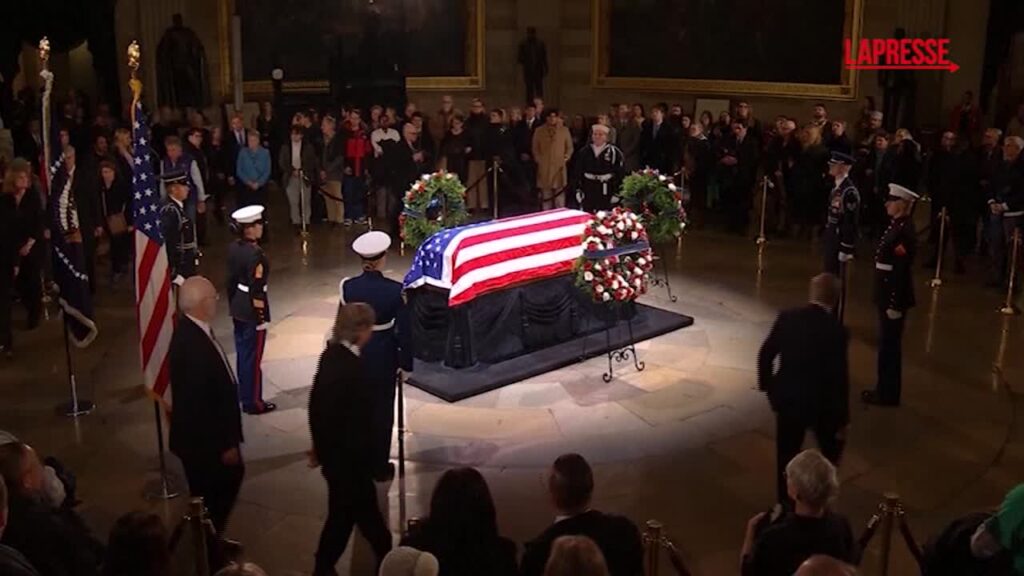 I membri del partito repubblicano e democratico, che hanno servito durante il mandato presidenziale di Jimmy Carter, rendono omaggio all’ex presidente Usa alla Rotonda del Campidoglio, a Washington dove è stata allestita la camera ardente. Il feretro rimarrà lì per i tre giorni di lutto scortato da una guardia d’onore fino a giovedì mattina, quando si svolgeranno i funerali di Stato nella National Cathedral della capitale americana. Jimmy Carter è morto il 29 dicembre all’età di 100 anni. Al funerale sono attesi sia il presidente Joe Biden sia quello eletto Donald Trump. Successivamente, la salma sarà riportata in Georgia nella città natale di Carter, Plains.