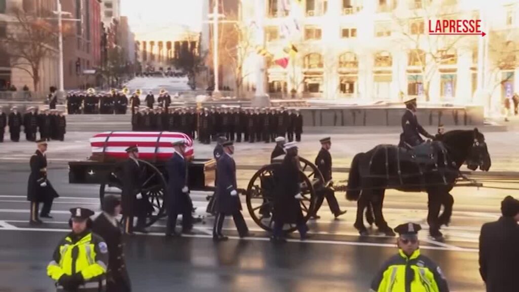Un corteo di auto ha trasportato il feretro a Washington per l’ultimo viaggio verso il Campidoglio, dove i membri del Congresso gli renderanno omaggio. Il quintetto d’ottoni della U.S. Army Band ha suonato mentre la gente attendeva l’arrivo del feretro. Giovedì verranno celebrati i funerali di Stato nella Cattedrale Nazionale di Washington durante il quale il presidente Joe Biden terrà un elogio funebre.
