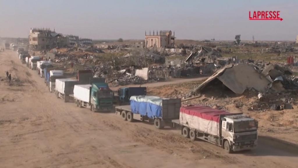(LaPresse) Camion con rifornimenti sono stati visti entrare a Gaza mercoledì, mentre Hamas e Israele sono nel mezzo di un fragile cessate il fuoco di sei settimane. Il Primo Ministro israeliano Benjamin Netanyahu martedì ha minacciato di ritirarsi dall’accordo e ha dato ordine alle truppe di prepararsi a riprendere i combattimenti contro Hamas se non rilascerà altri ostaggi sabato.