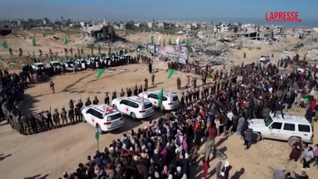 Hamas ha rilasciato tre ostaggi israeliani, sfilando davanti alla folla nel sud della Striscia di Gaza prima di consegnarli alla Croce Rossa, nell’ambito dell’accordo di cessate il fuoco che prevede in cambio la liberazione da parte di Israele di centinaia di prigionieri palestinesi. La Croce Rossa ha consegnato Iair Horn, 46 anni, con doppia cittadinanza israeliana e argentina; l’israelo-americano Sagui Dekel Chen, 36 anni; e il russo-israeliano Alexander (Sasha) Troufanov, 29 anni, all’esercito israeliano, che li ha portati in centri medici per verificare le loro condizioni di salute, prima che si ricongiungessero con i propri familiari.