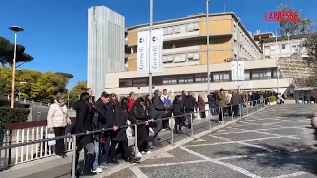 Tanti i fedeli che si sono radunati davanti all’ospedale Gemelli, di Roma, per dimostrare al propria vicinanza a Papa Francesco ricoverato da venerdì per curare la sua bronchite. “Purtroppo non si risparmia, abbiamo bisogno di lui“, dice una donna nei pressi del nosocomio. In tanti sono anche in piazza San Pietro. “Tutte le sere gli dico una preghiera”, racconta una fedele.