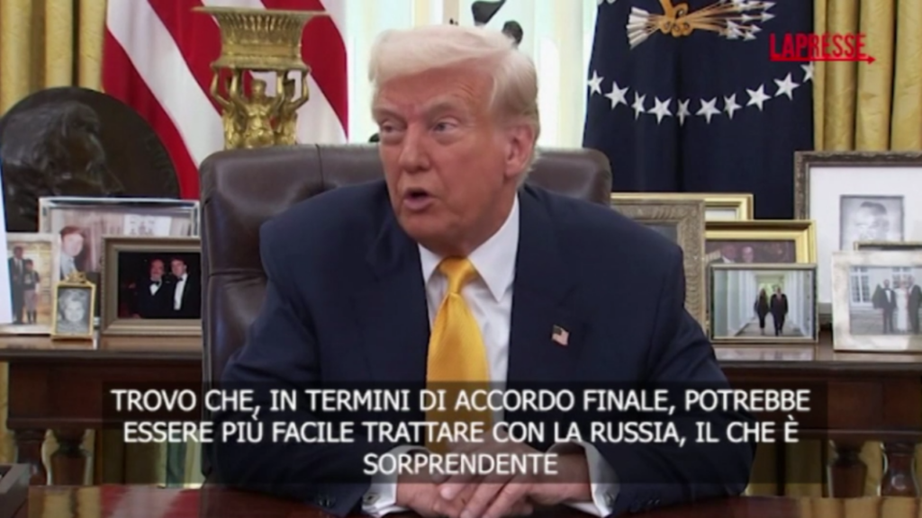 “Credo a Putin” quando dice che vuole la pace in Ucraina, “stiamo andando molto bene con la Russia, ma al momento stanno bombardando in modo infernale in Ucraina”, “francamente trovo più difficile trattare con l’Ucraina e loro non hanno le carte in mano”, mentre la Russia ha “tutte le carte”. Donald Trump torna a fare dichiarazioni concilianti nei confronti di Vladimir Putin e molto meno verso l’Ucraina di Volodymyr Zelensky. Dopo un bombardamento massiccio da parte di Mosca condotto con missili e droni sulle infrastrutture energetiche ucraine, in cui Kiev per la prima volta ha usato gli aerei da guerra francesi Mirage-2000 consegnati un mese fa, dallo Studio Ovale il tycoon ha di fatto difeso il leader del Cremlino. Solo poche ore prima il leader Usa aveva fatto sembrare che il pugno duro fosse possibile anche con Mosca: “Considerando il fatto che la Russia sta assolutamente ‘martellando’ l’Ucraina sul campo di battaglia in questo momento, sto prendendo in considerazione la possibilità di imporre sanzioni bancarie, sanzioni e dazi su larga scala alla Russia, fino a quando non verrà raggiunto un accordo di cessate il fuoco e di accordo finale sulla pace”, aveva scritto su Truth.