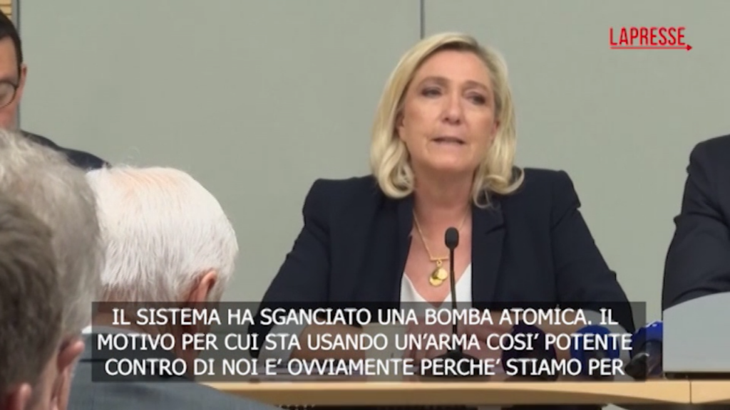 Marine Le Pen ha attaccato il “sistema” che, a suo dire, “ha sganciato la bomba nucleare“. “Se usa un’arma così potente contro di noi, è perché siamo sul punto di vincere le elezioni”, ha detto la leader del Rassemblement National ai deputati del suo partito, all’indomani della sua condanna per appropriazione indebita di fondi pubblici, accompagnata da una sentenza di ineleggibilità con esecuzione immediata che l’ha esclusa dalla corsa all’Eliseo nel 2027.