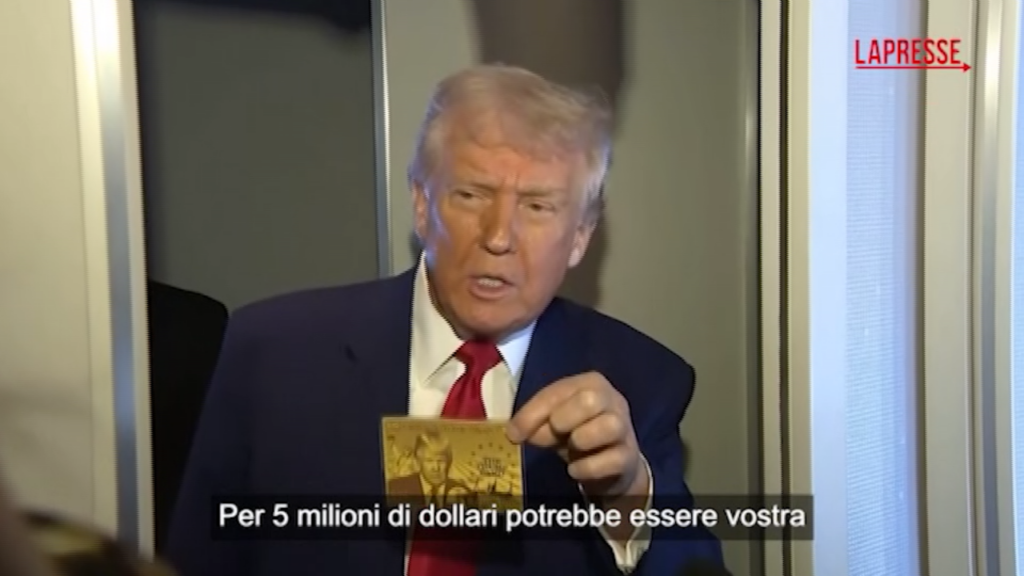 Donald Trump ha presentato la “Gold Card“. Il visto di ingresso speciale costa 5 milioni di dollari: l’amministrazione americana lo concederà ai milionari che potranno permetterselo. “Per 5 milioni di dollari potrebbe essere vostra”, ha detto il tycoon. Il presidente americano l’ha presentata ai giornalisti a bordo dall’Air Force One che lo portava in Florida.