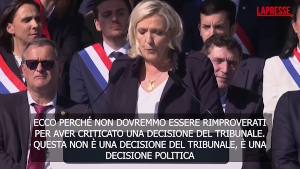 “Non si tratta di una decisione giudiziaria. Si tratta di una decisione politica“. Lo ha detto la leader dell’estrema destra francese, Marine Le Pen, riferendosi alla sua condanna, parlando dal podio allestito a Place Vauban a Parigi davanti a una folla di sostenitori che partecipano alla manifestazione in suo appoggio e contro la condanna. “Non esito a sottolineare la dimensione politica del processo che ci viene fatto”, ha detto Le Pen, affermando di essere finita dentro una “politica caccia all’uomo“.