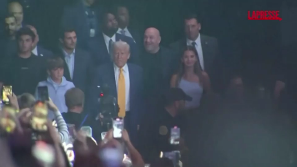 Applausi e ovazione all’arrivo di Donald Trump, presidente Usa, a un incontro di MMA a Miami, in Florida, UFC (Ultimate Fighting Champions) 314. Poco prima sull’Air Force One Trump aveva commentato con i giornalisti le trattative con l’Iran. Nel pubblico era presente anche Robert Kennedy jr, attuale segretario della Salute nel suo governo. Trump ha stretto la mano anche a lui ma, hanno notato alcuni utenti sui social, ha del tutto ignorato la mano tesa di Cheryl Hines, sua moglie. Tuttavia, immagini successive riprese nell’arena mostrano il presidente ancora una volta vicino al suo segretario della Salute e a sua moglie, mentre conversa con entrambi.
