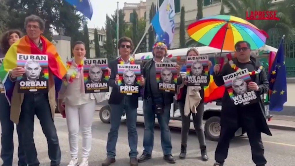 “Il governo ungherese ha bandito il Pride con una discriminazione enorme nei confronti della comunità Lgbtqia+. Per questo +Europa ha portato il Pride qui davanti all’ambasciata ungherese”: così il segretario di +Europa, Riccardo Magi, descrive l’iniziativa del partito che con alcuni membri e attivisti ha inscenato nel pomeriggio una simbolica versione in miniatura del Pride davanti all’ambasciata dell’Ungheria in Italia a Roma. L’obiettivo è quello di protestare contro il governo di Viktor Orbàn che con alcune riforme di legge e modifiche costituzionali ha vietato eventi come il Pride appellandosi alla tutela dei minori. “Siamo qui per mostrare che l’Europa deve essere un luogo di democrazia, di diritti, di diritti civili e libertà individuali”, ha aggiunto Magi.