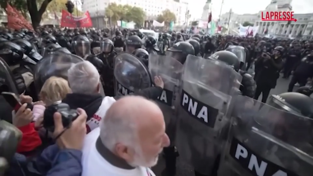 Pensionati e manifestanti si sono scontrati mercoledì con la polizia durante una protesta davanti al Congresso argentino contro le politiche economiche attuate dal governo del presidente Javier Milei. Quella che era iniziata come una piccola e pacifica manifestazione a Buenos Aires si è trasformata in scontri quando i manifestanti hanno cercato di bloccare una strada. La polizia ha arrestato un fotoreporter e lo ha rilasciato poche ore dopo.