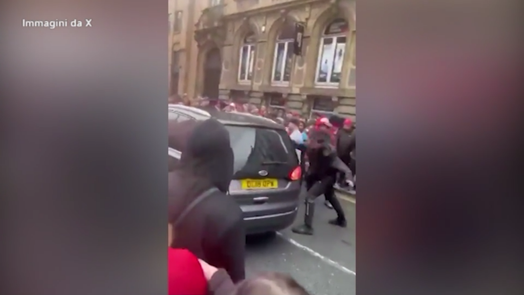 (LaPresse) Un video mostra i momenti di tensione prima che il conducente di un’auto travolga a Liverpool i tifosi dei Reds alla parata per la vittoria della Premier League della squadra di Arne Slot. 47 i feriti. L’uomo, poi arrestato dalla polizia, cerca di passare per la strada affollata di persone. Alcuni tifosi prendono a calci la sua vettura, lui accenna una retromarcia verso i supporter che circondano l’auto. Poco dopo il 53enne travolgerà la folla. DISTRIBUTION FREE OF CHARGE – NOT FOR SALE