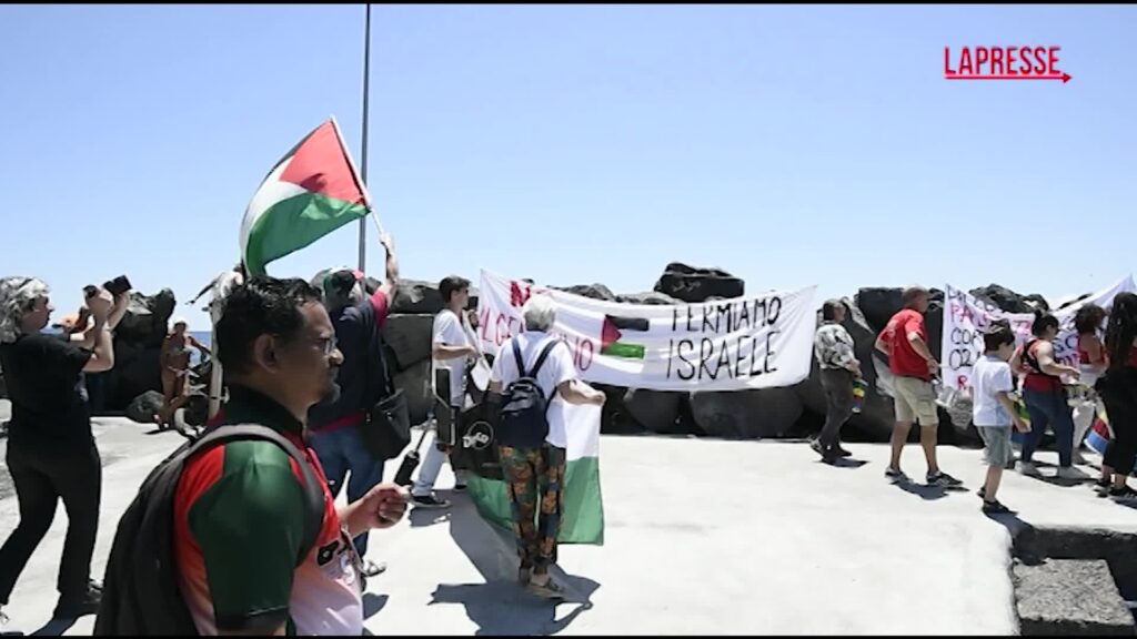 A Catania decine di persone alla partenza di Freedom Flottilla, il veliero diretto verso le acque basse della Striscia di Gaza, per rompere l’assedio, per denunciare il blocco israeliano e fornire aiuti di emergenza alla popolazione civile. Sul molo bandiere palestinesi e striscioni, al ritmo dei tamburi, per chiedere lo stop al genocidio.