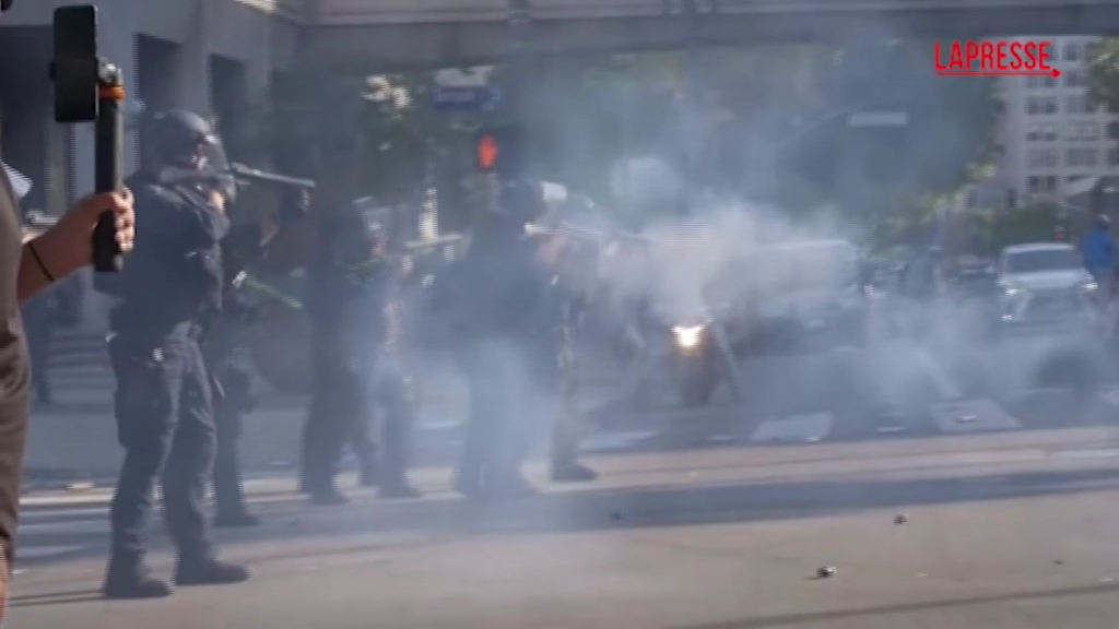 Le tensioni a Los Angeles si sono intensificate domenica, quando migliaia di manifestanti sono scesi in strada in risposta allo straordinario dispiegamento della Guardia Nazionale da parte del presidente Donald Trump, bloccando un’importante autostrada e dando fuoco ad auto a guida autonoma. Nelle immagini si vede la reazione delle forze dell’ordine, che hanno utilizzato gas lacrimogeni, proiettili di gomma e granate stordenti per controllare la folla. Le proteste nascono dalla stretta di Donald Trump sull’immigrazione in California.