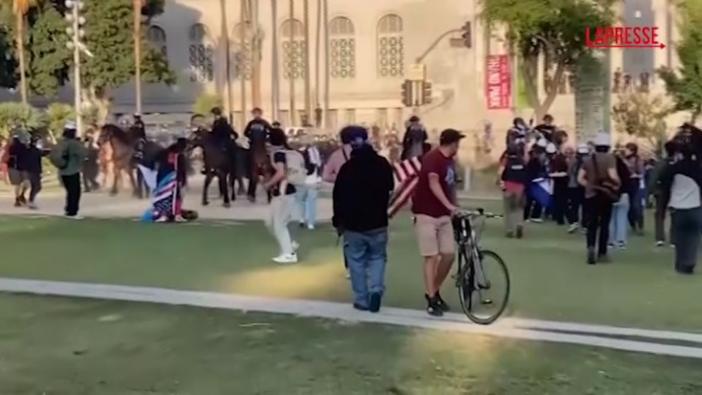 Una manifestazione nel centro civico di Los Angeles, poco prima dell’inizio della seconda notte di coprifuoco nel centro della città, è degenerata in un breve momento di caos quando la polizia in tenuta antisommossa, con molti agenti a cavallo, ha caricato un gruppo di persone. Dopo l’entrata in vigore del coprifuoco, sono stati effettuati alcuni arresti prima che l’area fosse sgomberata.