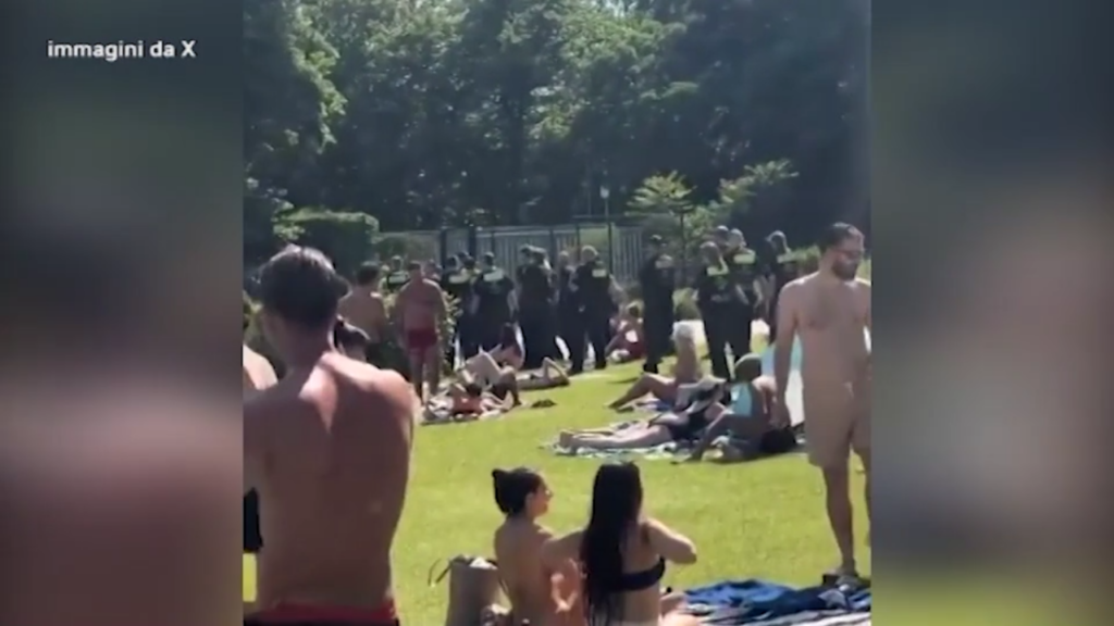 Sono diventate virali sui social le immagini di decine di agenti di polizia che fanno irruzione in una piscina a Berlino, nel quartiere Wilmersdorf. A causa del sovraffollamento della struttura, sono stati chiusi i cancelli di ingresso, lasciando fuori diverse persone che hanno dato in escandescenza.