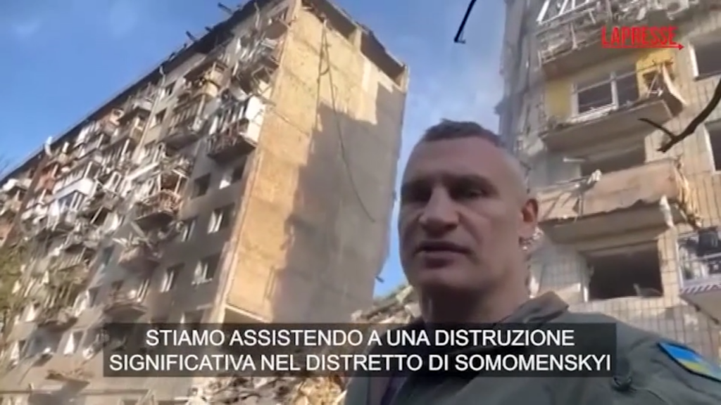 Il sindaco di Kiev Vitali Klitschko ha diffuso un video in cui cammina tra le macerie della città dopo l’ennesimo attacco dei russi. Il raid ha provocato la morte di almeno 15 persone, e lo stesso Klitschko ha avvertito che il bilancio delle vittime potrebbe continuare a salire. “Speriamo che non ci siano vittime sotto le macerie, ma non è possibile garantirlo e il numero dei morti potrebbe aumentare”, ha aggiunto. Altre 44 persone sono rimaste ferite in uno degli attacchi più sanguinosi degli ultimi mesi nella capitale ucraina, secondo quanto riferito dalle autorità locali. Fiamme e fumo nero si sono alzati dagli edifici distrutti, mentre gli elicotteri lanciavano acqua per spegnere le fiamme