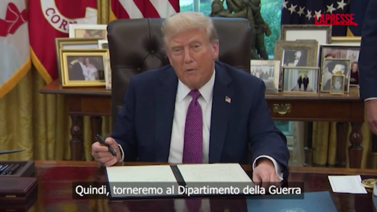 Donald Trump ha deciso di cambiare il nome del dipartimento della Difesa in dipartimento della Guerra. Lo ha comunicato ai giornalisti dallo Studio Ovale della Casa Bianca. “Abbiamo vinto la Prima e la Seconda Guerra Mondiale, abbiamo vinto tutto. Poi abbiamo deciso di diventare politicamente corretti. Penso che dipartimento della Guerra sia un nome molto più appropriato, soprattutto alla luce della situazione attuale nel mondo, abbiamo l’esercito più forte del mondo”, ha detto il presidente degli Stati Uniti.