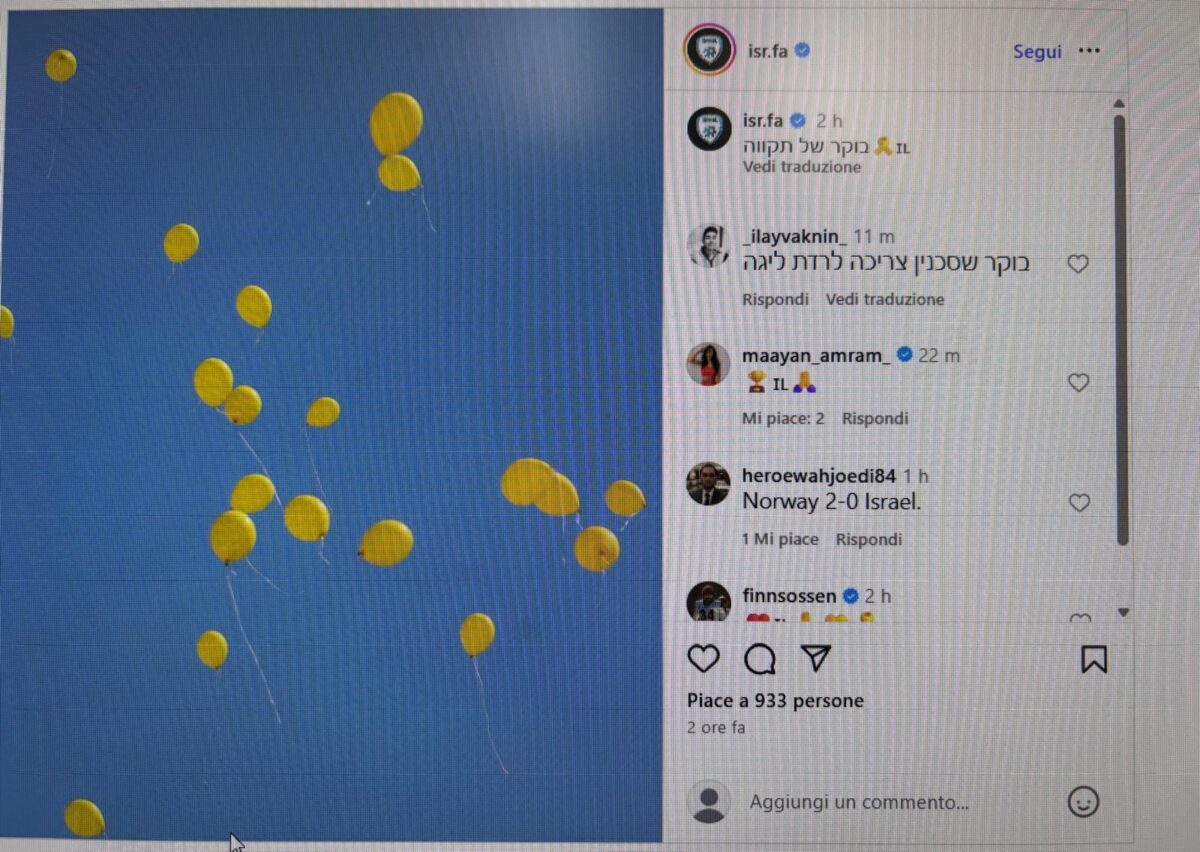 “Una mattina di speranza”. Con queste parole e una foto di palloncini gialli in volo nel cielo azzurro, la Nazionale di Israele commenta sui profili social ufficiali l’accordo per la pace nella striscia di Gaza.