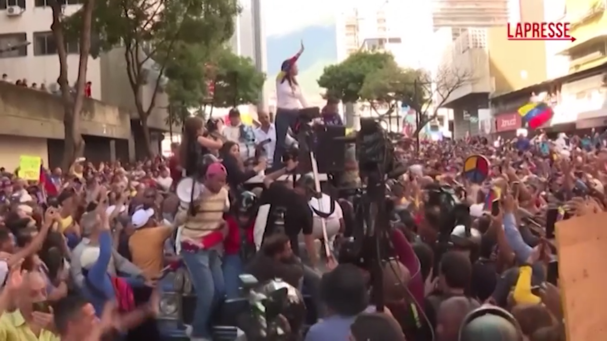 Il premio Nobel per la pace 2025 è stato assegnato alla leader dell’opposizione venezuelana Maria Corina Machado. Nelle immagini Machado che appare durante una manifestazione antigovernativa, prima in piedi sopra un veicolo e poi in moto con un casco nero, il 9 gennaio 2025 dopo 133 giorni di clandestinità. Al termine della manifestazione la donna era stata arrestata, per essere liberata alcune ore più tardi.