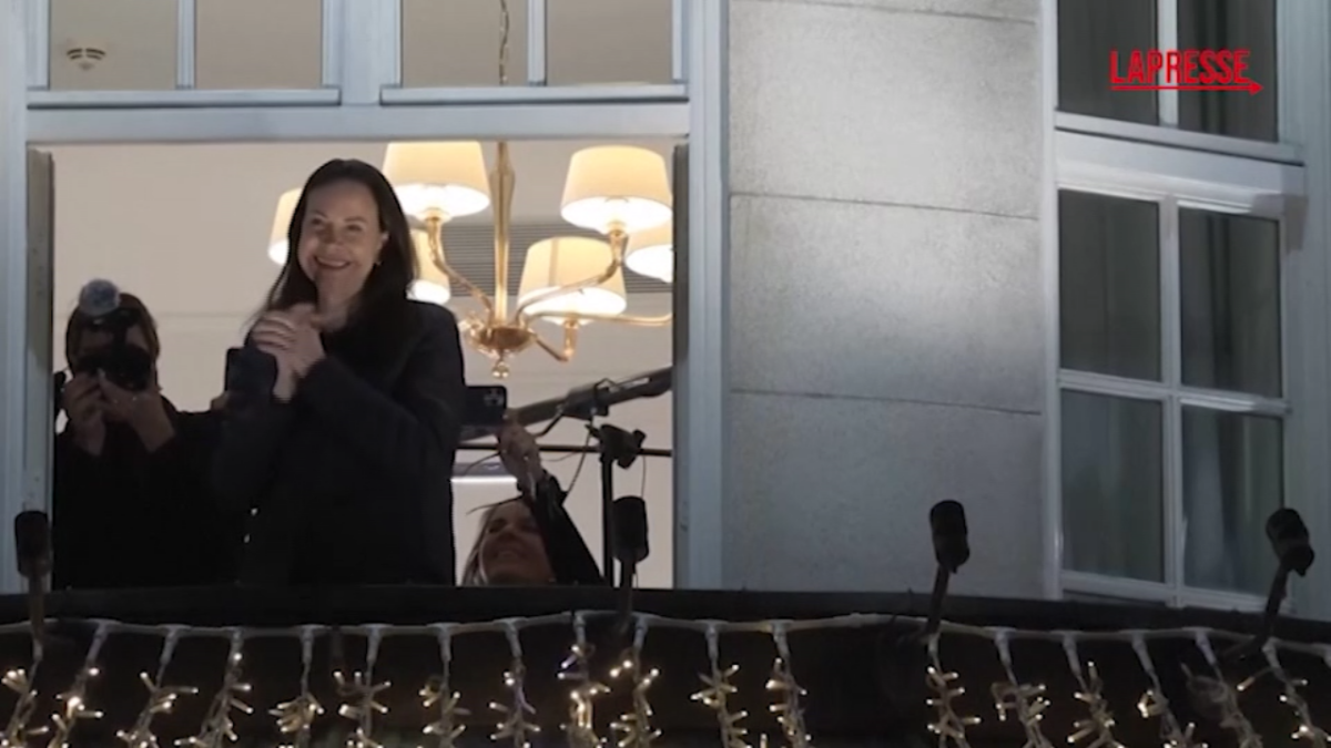 È arrivata a Oslo, capitale della Norvegia, Maria Corina Machado, l’oppositrice venezuelana premio Nobel per la pace anche se non ha fatto in tempo a partecipare alla cerimonia di premiazione. Machado si è affacciata al balcone del suo hotel nel centro della città e ha salutato la folla che la acclamava. Il premio è stato ritirato mercoledì dalla figlia Ana Corina Sosa che ha riportato le parole della madre: “Questo premio ha un significato profondo: ricorda al mondo che la democrazia è essenziale per la pace”.