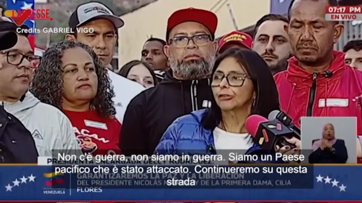 Il presidente ad interim del Venezuela, Delcy Rodríguez, ha dichiarato martedì sette giorni di lutto in onore dei membri dell’esercito del Paese morti durante l’operazione americana sabato. “La cosa più importante è avere coscienza di cosa significa prendersi cura del nostro Paese, prendersi cura della pace, che cessino le vessazioni contro il Venezuela, che cessi l’aggressione contro il coraggioso popolo di Bolivar – ha detto -. E da qui, un messaggio ai nostri giovani martiri che hanno dato la vita per la difesa del nostro Paese. Giovani martiri: ho deciso di decretare sette giorni di lutto in onore, onore e gloria alle donne e agli uomini che sono morti difendendo il Venezuela, difendendo il presidente Nicolás Maduro A loro va la nostra gratitudine”. Almeno 24 agenti di sicurezza venezuelani sono stati uccisi nell’operazione nella capitale del Venezuela, Caracas. “Qui non c’è guerra, perché non siamo in guerra. Siamo un Paese pacifico che è stato attaccato – ha proseguito -. Quindi andremo avanti su questa strada. Tutto il popolo venezuelano, in unità nazionale, camminiamo insieme per resistere, lavorando per il nostro futuro e lavorando per difendere la nostra storia e la nostra dignità”. Rodríguez non ha detto quando sarebbe iniziato il periodo di lutto.