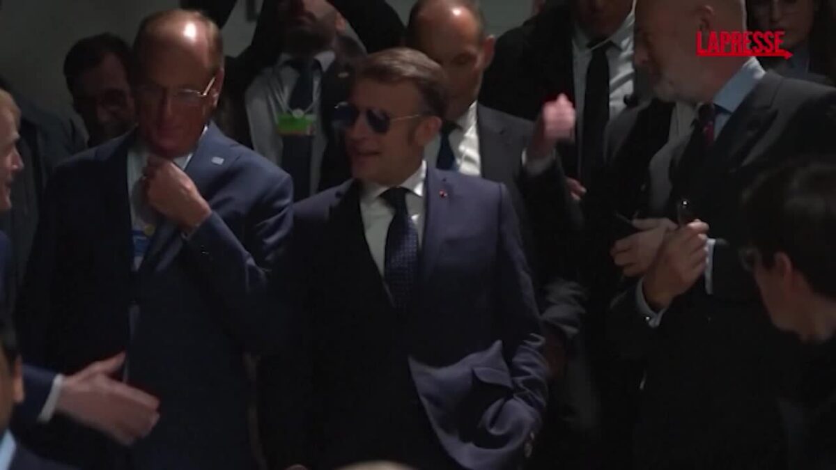 Occhiali a specchio e sorriso ironico. Così il presidente francese Emmanuel Macron è arrivato al forum di Davos, in Svizzera. Il capo dell’Eliseo ha attraversato una folla di giornalisti al World Economic Forum senza rispondere alle domande sul suo scambio di messaggi con Donald Trump.