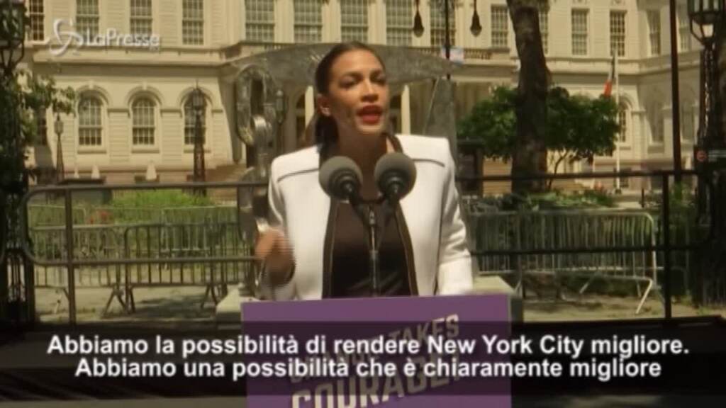 La deputata democratica statunitense Alexandria Ocasio-Cortez ha dato il suo endorsement all’avvocata per i diritti civili Maya Wiley, 57enne afroamericana, nella corsa che potrebbe portarla a diventare la prima sindaca donna di New York City. Le primarie democratiche si svolgeranno il 22 giugno, mentre il voto sarà a novembre. “E’ la persona giusta per mettere al centro la giustizia razziale, economica e climatica” ha detto durante il suo discorso AOC. CREDIT: NY1. NO ARCHIVIO