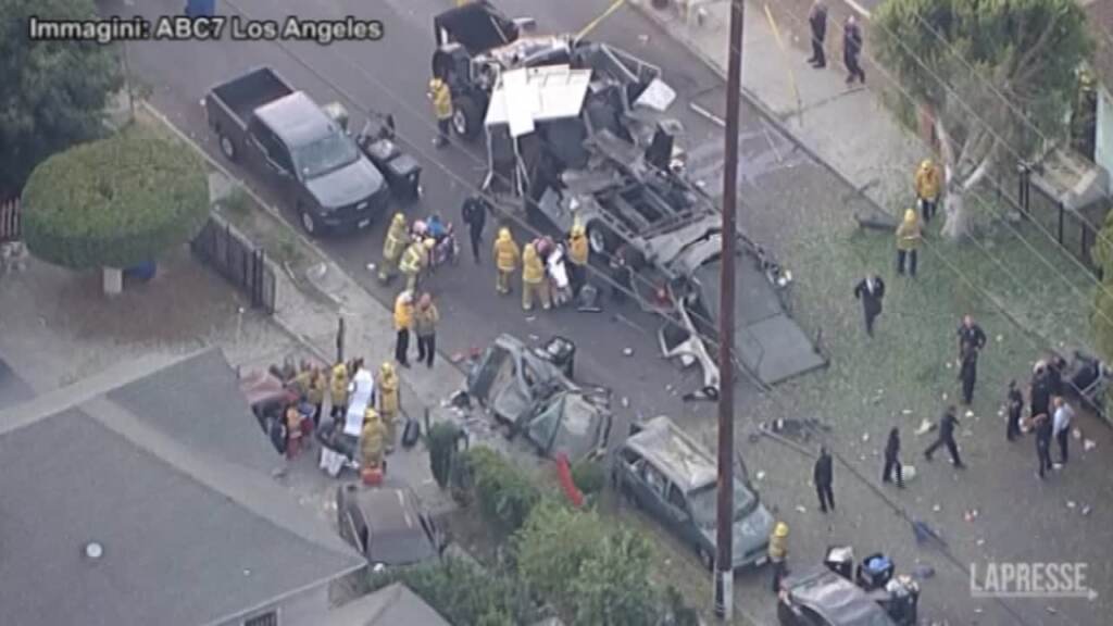 Un container di fuochi d’artificio illegali sequestrati in una casa a South Los Angeles è esploso la sera di mercoledì 30 giugno, danneggiando le case e le auto vicine e ferendo almeno nove persone. La polizia ha chiamato una squadra di artificieri dopo che una soffiata li ha portati a sequestrare 2.268 chilogrammi di articoli pirotecnici illegali fabbricati in Cina. Un uomo è stato arrestato con l’accusa di possesso di fuochi d’artificio e dispositivi distruttivi e anche con l’accusa di aver messo in pericolo i bambini perché due piccoli sono stati trovati nella casa. Stock di fuochi d’artificio sono stati collocati in un autoarticolato della polizia di Los Angeles e trasportati via per lo smaltimento, ma a un certo punto alcuni dei dispositivi che erano stati collocati all’interno di un container corazzato su un grosso camion della polizia di Los Angeles sono esplosi, demolendo il camion. La polizia ha evacuato le case vicine.