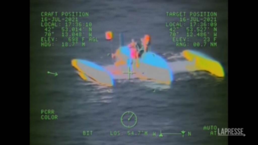 La Guardia Costiera degli Stati Uniti ha salvato tre persone, trovate sullo scafo della loro piccola imbarcazione capovoltasi a circa 20 miglia al largo della costa di Portsmouth, nel New Hampshire. Un elicottero della Guardia Costiera ha trovato i tre che chiedevano aiuto la sera di venerdì 16 luglio. Il video mostra gli uomini issati in sicurezza sull’elicottero prima di essere portati alla base della Pease Air National Guard, dove sono stati visitati dal personale di emergenza.