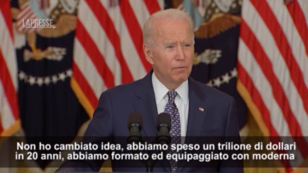 (LaPresse) “Non rimpiango la mia decisione”. Così il presidente Usa Joe Biden risponde in conferenza stampa ai giornalisti che gli chiedono se rimpianga la decisione di ritirare le truppe americane dall’Afghanistan, vista l’avanzata dei talebani. “Abbiamo speso un trilione di dollari in 20 anni e perso migliaia di vite – ha detto Biden – Devono combattere per la loro nazione, penso abbiano capito che devono iniziare a unirsi politicamente ai vertici”.
