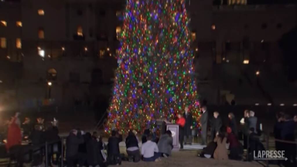 (LaPresse) La presidente della Camera Nancy Pelosi, insieme ad altri membri del Congresso, ha acceso il grande albero di Natale addobbato all’esterno del Campidoglio degli Stati Uniti, a Washington. L’albero, soprannominato affettuosamente “Sugar Bear”, è stato decorato con oltre 15.000 ornamenti. La tradizione dell’accensione dell’albero di Natale del Campidoglio è iniziata nel 1964.