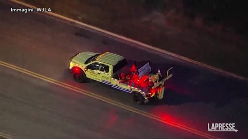Ha rubato un carro attrezzi e si è dato alla fuga, distruggendo una barricata di auto della polizia e speronando veicoli privati che trovava lungo il percorso. È accaduto a College Park, nello Stato americano del Maryland. Secondo quanto riferito dalla polizia di Stato, gli agenti della caserma di College Park hanno risposto alla segnalazione di un camion rubato della State Highway Administration poco prima delle 17.15 ora locale di venerdì 16 febbraio. Durante l’inseguimento, il camion ha colpito linee elettriche e diversi veicoli sulla Route 29 in direzione sud prima di fermarsi in una zona boscosa. Le riprese dell’elicottero mostrano gli agenti che sfondano i finestrini del veicolo prima di tirare fuori l’autista. Il sospettato è stato arrestato poco prima delle 18.30.