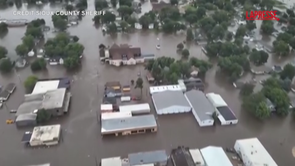 Centinaia di persone costrette a lasciare le proprie case a Rock Valley, Iowa, a causa dell’esondazione del fiume Rock provocata dalle forti piogge che hanno allagato lo Stato americano. Le immagini delle zone alluvionate riprese dai droni mostrano praticamente solo tetti e cime degli alberi emergere dalle acque.