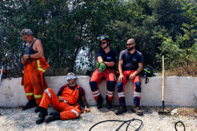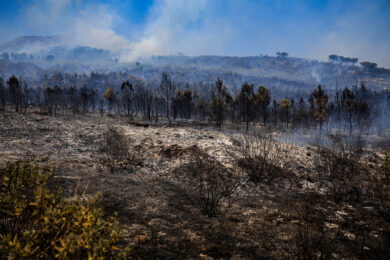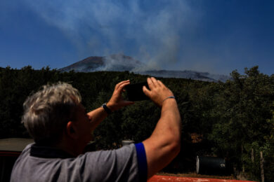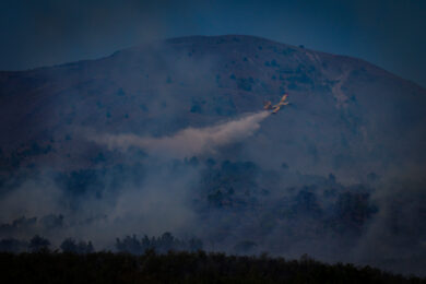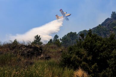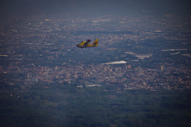 Incendio nel Parco Nazionale del Vesuvio, divampato circa 6 giorni fa. Continuano gli interventi dei Vigili del Fuoco e della Protezione Civile con quattro Canadair e due elicotteri – Boscoreale, provincia di Napoli, 11 agosto 2025. (Foto Alessandro Garofalo/LaPresse) Fire in Vesuvius National Park, which broke out about six days ago. Firefighters and civil protection agencies continue to battle the blaze with four Viking Air 415 aircraft and two helicopters – Boscoreale, province of Naples, August 11, 2025. (Photo Alessandro Garofalo/LaPresse)