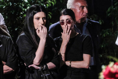 Rosario Fiorello and Tiziana, Pay tribute to Pippo Baudo in the chapel of rest set up at the Teatro delle Vittorie, August 18, 2025 (photo Valentina Stefanelli / LaPresse)