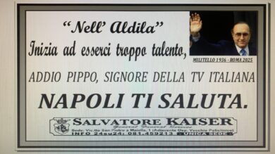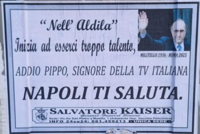 Galleria foto 'Pippo Baudo, il manifesto funebre a Napoli: “Nell’aldilà inizia a esserci troppo talento”' - foto 1