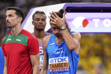 Galleria foto Articolo – foto 1 Italy’s Gianmarco Tamberi reacts after failing to qualify in the men’s high jump qualification at the World Athletics Championships in Tokyo, Sunday, Sept. 14, 2025. (AP Photo/Matthias Schrader) Associates Press / LaPresse Only italy and spain Leggi l’articolo