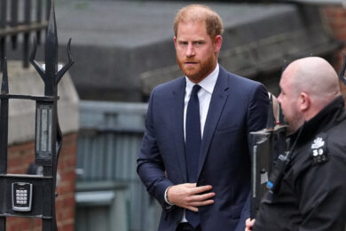 Britain’s Prince Harry arrives at London’s High Court to lead a group, including Elton John and Elizabeth Hurley, accusing the Daily Mail’s publisher of privacy invasion through unlawful tactics in a trial that is part of a wider phone hacking scandal in London, Monday, Jan. 19, 2026. (AP Photo/Kirsty Wigglesworth)