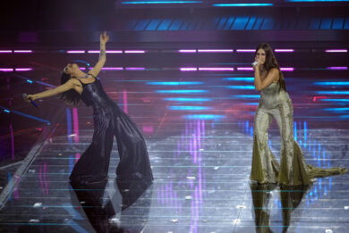 Levante e Gaia sul palco del Festival di Sanremo, 27 febbraio 2026 (Photo by Marco Alpozzi/LaPresse)