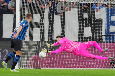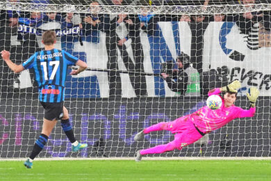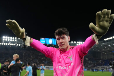 Lazios players celebrates winning the match , Edoardo Motta during the Frecciarossa Italian Cup 2025/ 2026 soccer match between Atalanta and Lazio at the New Balance Stadium in Bergamo, north Italy – Wednesday , April 22 , 2026. Sport – Soccer . (Photo by Spada/LaPresse)