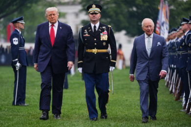 Galleria foto Articolo – foto 1 Re Carlo III applaude dopo che il presidente degli Stati Uniti Donald Trump si è voltato a guardarlo mentre il discorso durante la cerimonia di benvenuto alla Casa Bianca (Press Association via AP Images) Leggi l’articolo