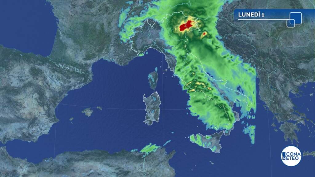 Tempo perturbato al Nord con piogge diffuse e a tratti intense fin dal mattino sulle regioni occidentali, in estensione in giornata al Nord-Est, dove verso sera potranno essere molto abbondanti con possibili nubifragi fra Veneto e Friuli. La sera migliora a Nord-Ovest. Al Centro qualche pioggia fin dal mattino sul versante tirrenico; in giornata piogge più diffuse e in intensificazione sulle regioni tirreniche dove saranno possibili anche dei temporali fra pomeriggio e sera. Molte nubi anche al Sud e sulle Isole ma al mattino con poche piogge di rilievo; nel corso della giornata peggiora in Sardegna, Sicilia occidentale, Campania e Puglia meridionale con piogge sparse localmente temporalesche nelle Isole; piogge più isolate tra Basilicata e Calabria; in serata migliora in Sardegna, possibili rovesci o temporali sul settore tirrenico e ovest Sicilia. Temperature massime in rialzo all’estremo Sud, sulle regioni adriatiche e nelle Isole, in calo al Nord-Est e sulle regioni tirreniche. Venti moderati o tesi di Scirocco su Adriatico, Ionio, Ligure e Tirreno orientale, da ovest o sud-ovest negli altri mari di ponente; la sera Foehn nelle valli alpine occidentali. Mari in generale mossi o molto mossi.