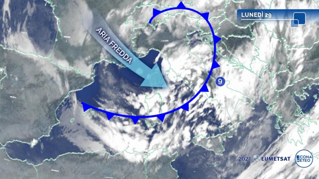 Il fronte freddo e l’aria di origine artica al suo seguito proseguono oggi il loro cammino lungo la Penisola in direzione delle regioni meridionali. L’evidente raffreddamento, dovuto alla propagazione dell’aria fredda, è accentuato da venti molto intensi, fino a burrascosi intorno alle Isole, specie in Sardegna dove sono probabili raffiche prossime ai 100 km/h. Mentre l’instabilità si trasferisce al Centro-Sud, con episodi di maltempo di stampo invernale (limite della neve a quote collinari al Centro e in Sardegna), al Nord le schiarite preludono a una prossima notte con gelate diffuse anche in pianura. Martedì il tempo tornerà temporaneamente a stabilizzarsi anche al Centro-Sud.