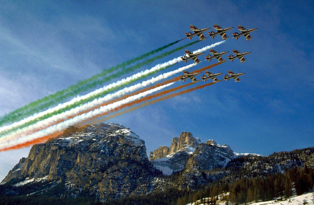 1313° Gruppo Addestramento Acrobatico, meglio noto come Frecce Tricolori: è la Pattuglia Acrobatica Nazionale dell’Aeronautica Militare Italiana nata il primo marzo 1961. 9 aerei in formazione (denominati “Pony)”, 1 solista, 10 in tutto, per la pattuglia acrobatica più numerosa del mondo. Da sessant’anni le Frecce portano il tricolore italiani nei cieli del mondo.