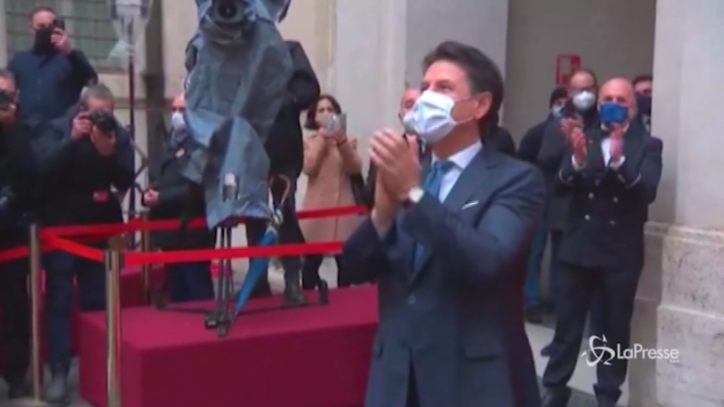 Il tributo dei dipendenti di Palazzo Chigi a Giuseppe Conte che lascia la sede del governo dopo il passaggio di consegne con Mario Draghi. Applausi dalle finestre ai quali l’ex premier risponde con un caloroso saluto, mano nella mano con la compagna Olivia Paladino.