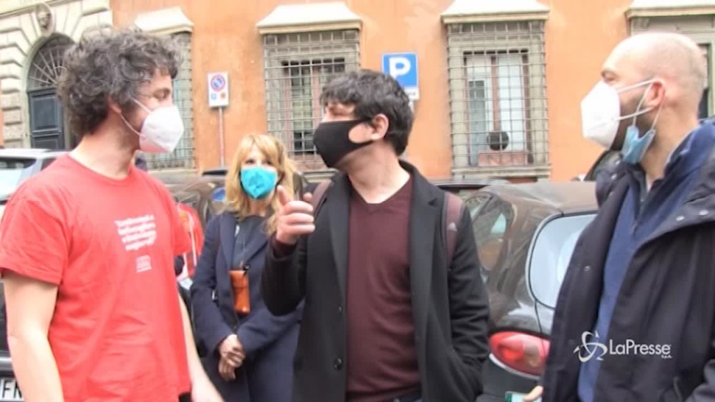 (LaPresse) Mattia Santori e altri esponenti del movimento delle Sardine con sacchi a pelo davanti al Nazareno, sede del Pd a Roma. “Siamo pronti a rimanere dentro il Nazareno finché non ci verrà assicurato che le cose si facciano con le persone e non tra blocchi di potere”, spiega Santori che aggiunge: “Chiediamo che si apra una fase costitutente tra progressisti”.